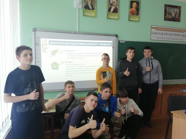 Під час зустрічі школярі обговорили 15 декларацій відповідальності людини, записаних Богданом Гаврилишиним.