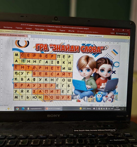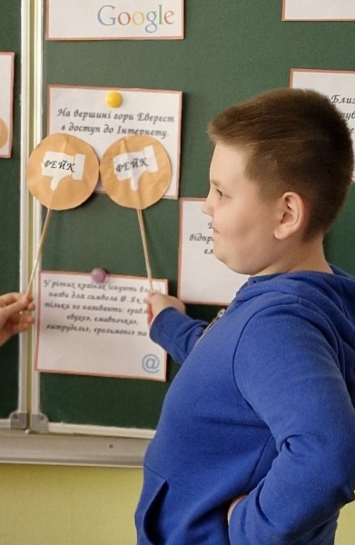 У рамках Тижня медіаграмотності учні 5-А та 6-Б класів взяли участь у заході, спрямованому на формування критичного мислення та вміння розпізнавати фейки. Під час заняття школярі дізналися що таке маніпуляція та закріпили поняття "фейк", "судження", "факт". Свої знання перевірили з допомогою вікторини та гри "Впіймай фейк". Переглядаючи мультфільм "Гаджет та втрачене дитинство", діти ділились прикладами з життя та переконались, що сучасній людині необхідний навик медіаграмотності.