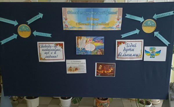 нашій школі відбулася лінійка, присвячена Дню Гідності та Свободи — важливій даті, що нагадує про події, які змінили сучасну історію України та утвердили прагнення нашого народу до свободи, демократії та незалежності.