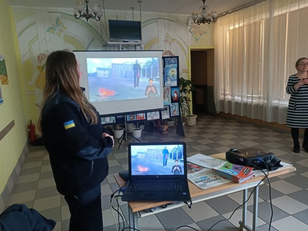 Фахівці розповіли школярам про правила безпечної поведінки з вибухонебезпечними предметами, що є особливо актуальним у наш час. Також учні дізналися, як діяти у разі виникнення пожежі вдома та які засоби можна використовувати для її гасіння.