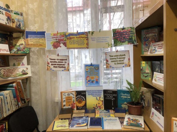 У бібліотеці оформлена книжкова виставка «Наша мова солов’їна» на якій представлено словники української мови та українського правопису, вислови відомих авторів про українську мову. З учнями проведено пізнавально-творчі літературні години, спрямовані на прищеплення любові до українського слова та вшанування його краси. Читаймо книжки українською мовою, слухаймо, як звучить наша мова. Адже наша мова – наш скарб і наш оберіг! І допоки в Україні пануватиме рідна мова – ми непереможні!